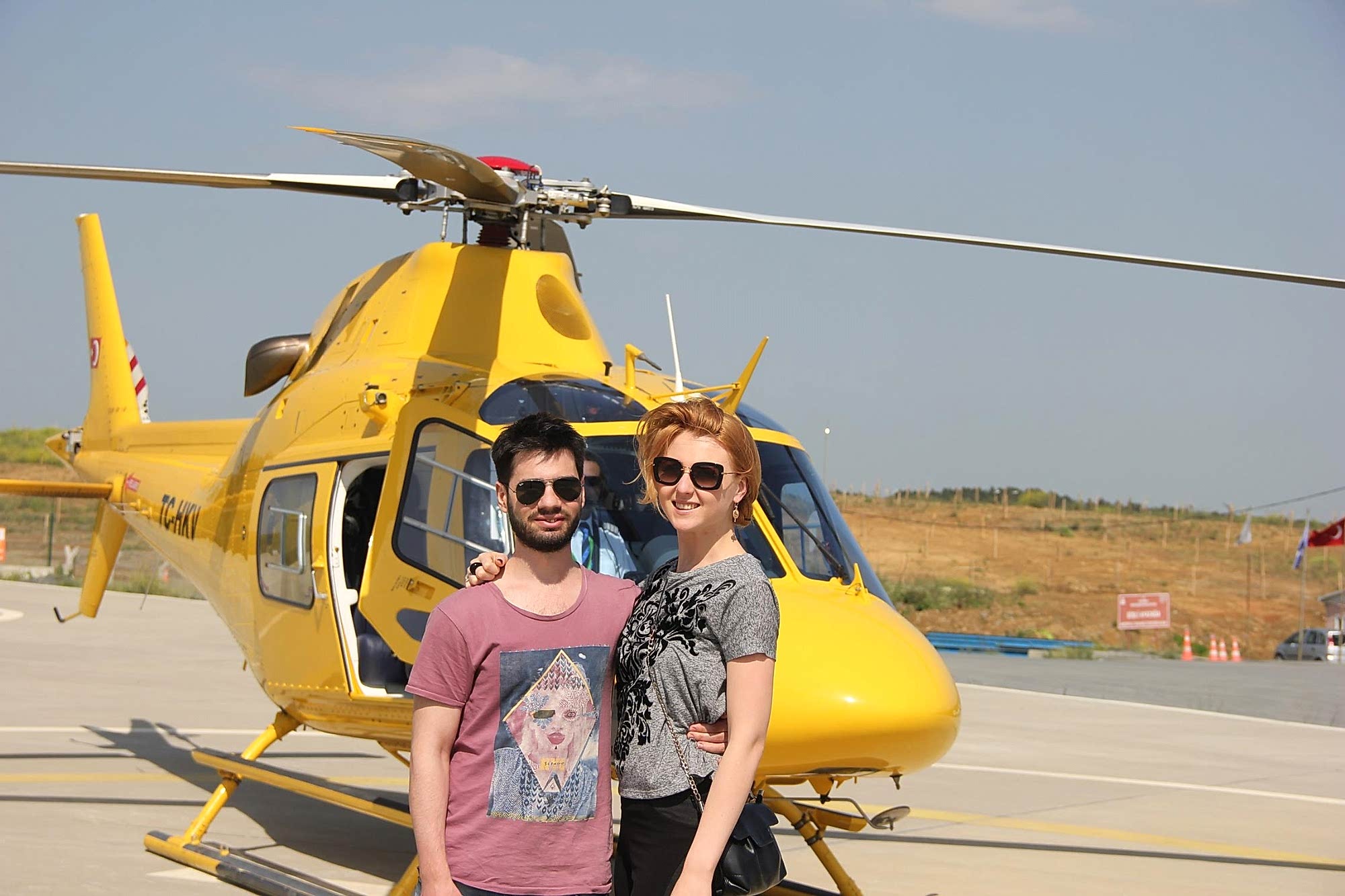 We were in Istanbul for our vacation and he made a helicopter tour reservation over Istanbul. We went to the heliport for the flight and our tour has started. I was watching around and taking photos. When we came over the Bosphorus, he gave me the ring and made marriage proposal in helicopter. I was shocked and very suprised. We were flying in the sky in a helicopter and had an amazing Istanbul view. It was a fascinating period of time like the time had stopped. It was a really special moment for me.
